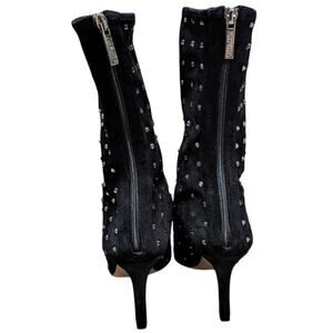 Paris Texas Crystal Embellished Black Suede Ankle Boots 37.5 Glam Stiletto Heels