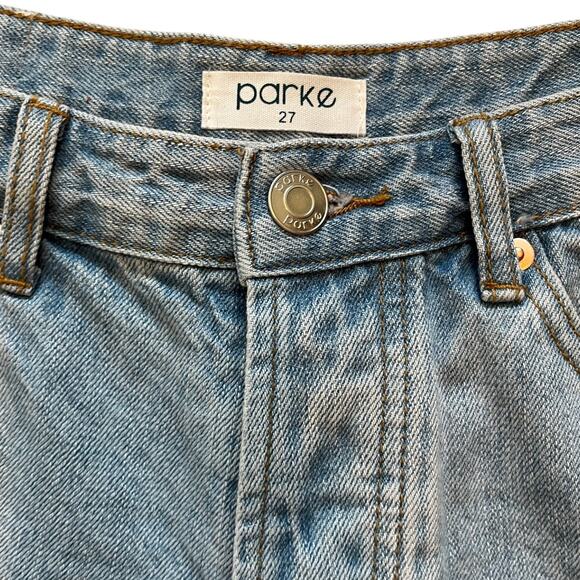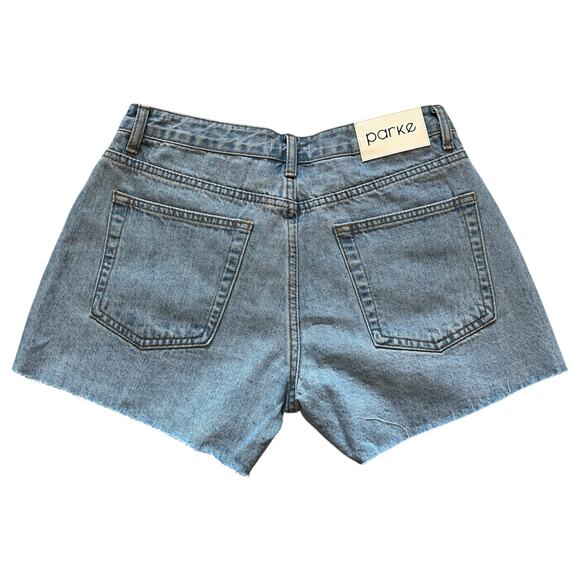 Parke Button Fly Mid Rise Raw Hem Cut Off Denim Shorts Blue Light Wash Size 27