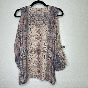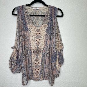 Parker Cold Shoulder Paisley Puff Sleeve 100% Silk Peasant Blouse