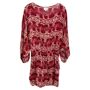 Parker Women's Dress Red Rose Syncned Long Sleeve 100% Silk Scoop Neck Size M