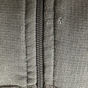 Good preowned vintage condition, overall wash wear and light pilling. Small hole near zip. See photos.