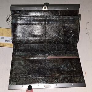 DescriptionThe Cauchy is a stylish frame wallet that opens wide to a variety of organizational features. Pretty and practical, while still being a great size to fit in your bag or carry alone as a clutch. The Cauchy also blocks RFID signals to protect your credit cards and other identification.
