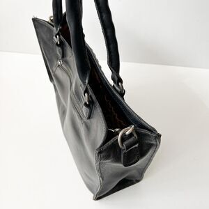 Patricia Nash Black Leather Tote Shoulder Bag Handle Purse Studded Trim Satchel Smooth Leather Gold Silver Hardware