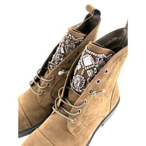 Patrizia Blazin Combat Boots 9 NWT Olive Green Jewel Lace Up Ankle Booties Suede