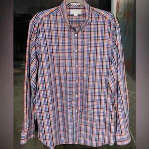 Paul Fredrick Men's Shirt 100% Long Stable Cotton Long Sleeve Check with multi colored Checks Size L