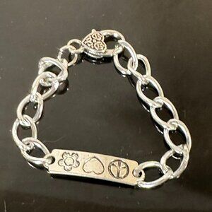 Peace Heart Flower Silver Chain Bracelet Heart Gift Charm Lightweight Hippie