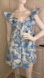 Vibrant blue floral pattern. Flattering mini length. Stylish ruffle sleeves. Perfect for summer outings.