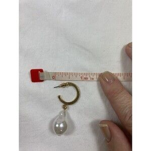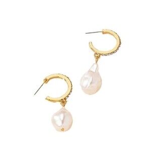 Pearl Drop Earrings Gold Tone Hoops Faux Diamonds Pearlcore