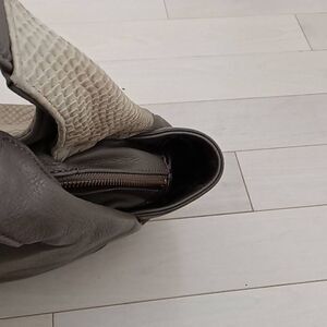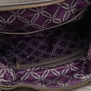 Perlina New York Womens Snake Pattern Embossed Leather Shoulder Bag Gray & Cream