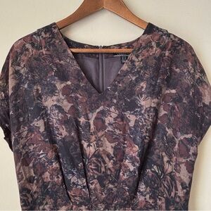 Peruvian Connection Dusky Floral Dress 10 Pleated V Neck