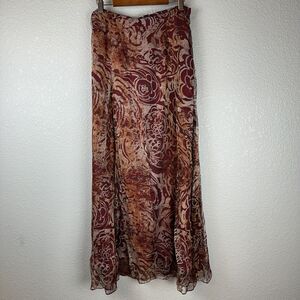 Peruvian Connection Womens Long Maxi Skirt Size 2 Red Paisley Silk Boho Western