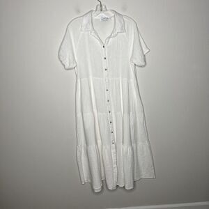 Petal & Pup Gauzy Tiered Button Front Midi Dress Size 6 Pockets Flowy Lagenlook