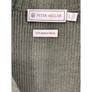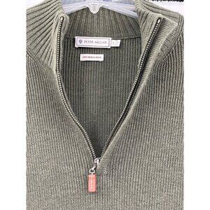 Peter Millar Mens Green Extra Fine Merino Wool Ribbed Half-Zip Sweater Large