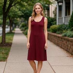 Piccadilly Fashions plum sleeveless dress. 94% acetate, 6% elastane.