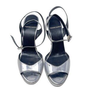 These Pierre Hardy silver heels exude sophistication, featuring a sleek stiletto heel and adjustable straps for a secure fit. Ideal for evening wear.