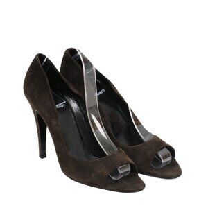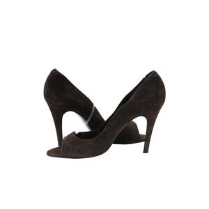 Pierre Hardy Women Open Toe Pumps Size US9.5 EU39.5 Brown Suede 100mm Heels