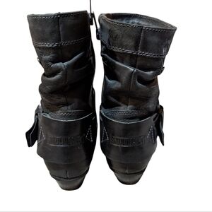 Pikolinos Brujas Black Leather Boots Harness Western Boho size 38 US 7.5-8