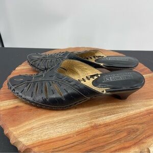 Pikolinos Leather Slides Mules Kitten Heel Cutout Contrast Stitch 38 (US 7.5-8)