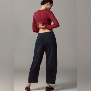 Pilcro Mid-Rise Pull-On Tapered Denim Knit Jeans Dark Wash Wide SZ S Petite