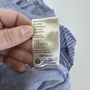Pilcro Shirt Womens XS Blue Ruffle Flutter Sleeve Cotton Knit Striped Ribbed Hem