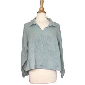Pink Lily Aqua Muslin Lightweight Flowy Boutique Balloon Sleeves Textured TJ