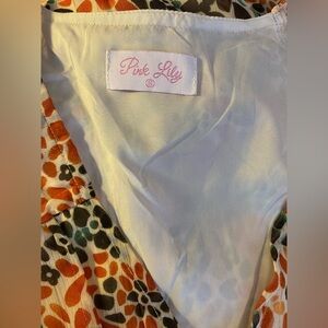 Pink Lily Floral Bohemian Maxi Dress w/ Tassels Size Small Orange Brown Cream
