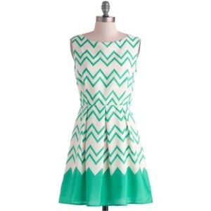 Pink Owl Green And White Dress. New With Tags. Side Zipper.