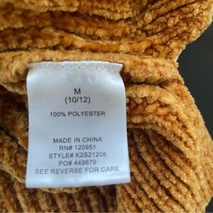 Charming corduroy floral skirt with vibrant floral print. Cozy cable knit sweater with an adorable lace up back in a rich gold color. Perfect for fall! Sweater is Pink Republic brand and skirt is SO from Kohls.