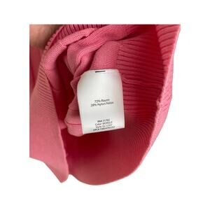 * This Pink Ribbed Lightweight Sweater by George is a stylish and comfortable addition to any woman's wardrobe. Made from a blend of Rayon and Nylon, this sweater features a scoop neck and short sleeves, perfect for warmer weather. The 2XL size offers a regular fit, while the pullover style and solid pink color make it an easy and versatile piece to wear. Machine washable delicate cycle and featuring a lightweight design, this sweater is both practical and fashionable for everyday wear.