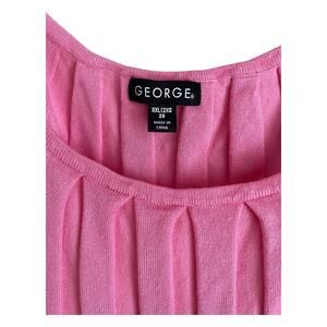 Pink Ribbed Lightweight Sweater Short Sleeve Scoop Neck by George NEW