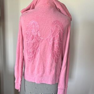 Pink Victoria Secret Zip up Hoodie with Sequin Angel Wings Vintage RARE