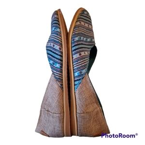 Piranda* Dignity* Slip on Flats* Blue/Tan Print* Sz 9