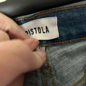 Pistola Skinny Jeans light wash, open hem. Size 27. Lightly distressed.