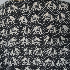 Beautiful flowy blouse with 3/4 length sleeves and all-over elephant print. Tab sleeves. Excellent condition, no size so see measurements below.