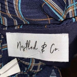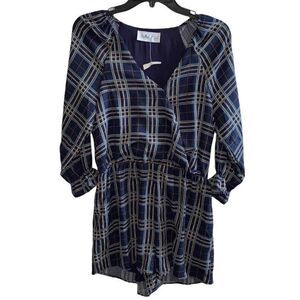 Plaid V-Neck Romper Women Medium Blue Long Sleeve Lined Negtled & Co Elast Waist