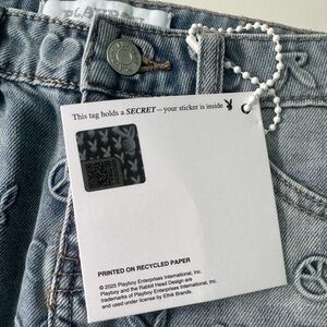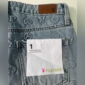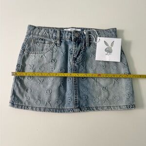 Cute Sexy Playboy Bunny denim miniskirt with embossed logos throughout.