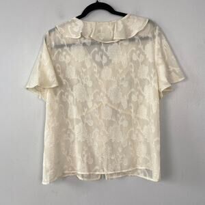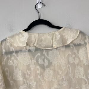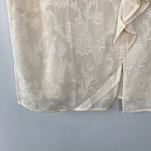 Pleione Cream Empire Waist Blouse V-Neck Ruffle Front Textured Floral Size L