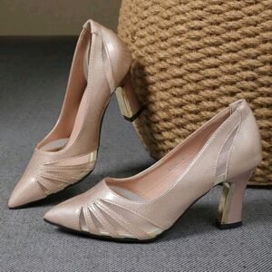 Pointed Toe Thick Heel Mesh Open Toe Slip On High Heel Pumps,Professional Work