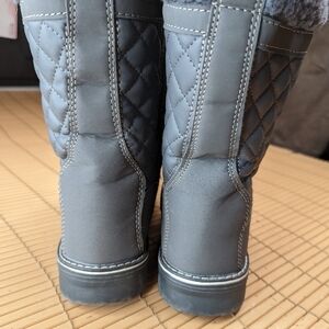Polar Womens Lace Up Faux Fur lined and trim Mid Calf Waterproof Grey Winter Boots Size 7M.