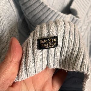Polo Jeans Ralph Lauren Light Blue Cotton Cable Knit Hooded Sweater Size Large