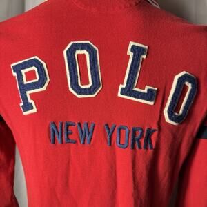 Polo Ralph Lauren Shirt Red New York Embroidered Logo Mens Medium Long Sleeve