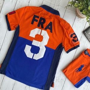 Vibrant Orange & Blue Short-Sleeve Kids Polo Shirt.