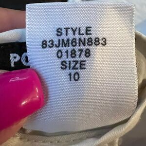 I’m great condition, cotton khaki shirts , 2 front pockets , button and zipper closure. Inseam is 5 inches , waist is 32 inches.