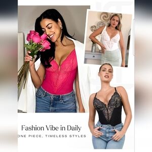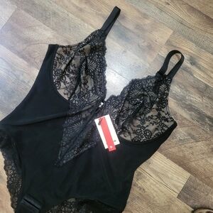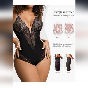NWT Popilush Black Lace Deep V Corset Shapewear Tummy Control Bodysuit Size  XXL
