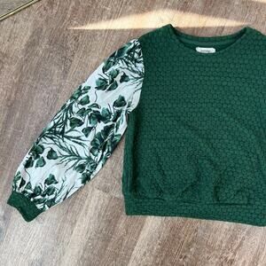 Porridge Anthropologie Women's Green Textured Pullover Botanical Sleeves