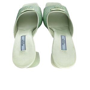 Prada 1XX642 Satin Crystal Embellished Acqua Slide Heel Sandals, 36.5