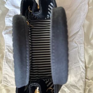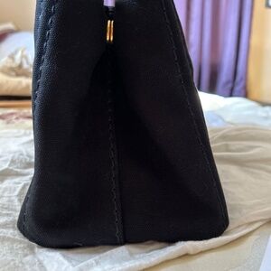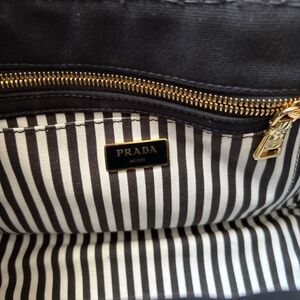 Elegant Prada bag in black leather. Features iconic logo detail. Perfect for any occasion.