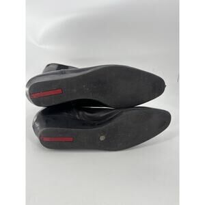 Prada Boots Womens 39 Black Leather Knee High Zip Up Wedge Elastic Nylon Panel
