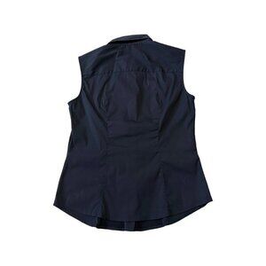Prada Dark Blue Sleeveless Button Down Shirt, Size 44 Italy, stretch