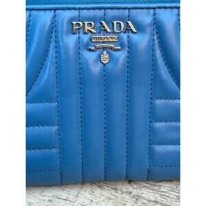 Prada Diagramme zippy wallet - blue quilted nappa calfskin leather Pristine